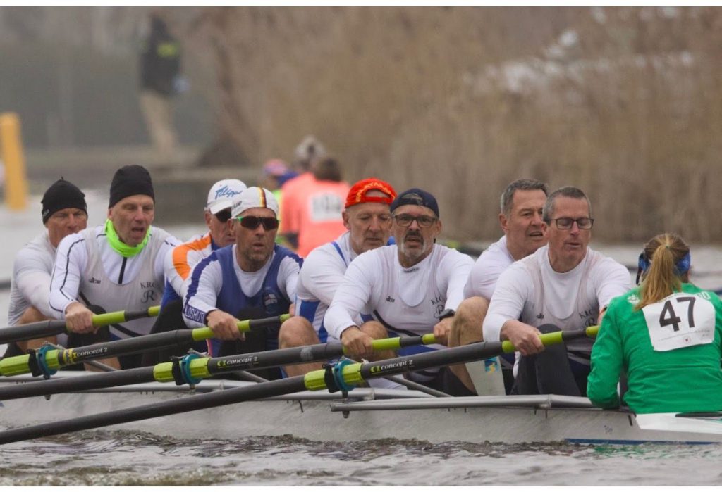 Eine handverlesene Masters-Mannschaft vom Koblenzer Ruderclub Rhenania (KRCR) und befreundeten Vereinen hat beim traditionsreichen “Head of the River Amstel” in Amsterdam über 8 Kilometer mit starken Leistungen auf sich aufmerksam gemacht. Trotz erschwerter Vorbereitung mit lediglich zwei Trainingsfahrten aufgrund von Hochwasser präsentierte sich der Achter in hervorragender Verfassung. Die Idee zur Teilnahme entstand Anfang Januar in einem Telefonat zwischen Rhenane Dirk Zimmer und Stefan Heyde aus Limburg, die gemeinsam eine leistungsstarke Crew für die Langstreckenregatta zusammenstellten. Für den F-Achter am ersten Tag gingen neben Dirk und Stefan noch Erkut Tinaz (Offenbach), Carsten Anspach, Volker Steinberg und Holger Löser alle KRCR, Ingmar Lepiors (Würzburg) sowie Markus Grobert (Lugano) an den Start. Mit einem Durchschnittsalter von 60 Jahren erfüllte die Mannschaft exakt die Anforderungen der Altersklasse F. Am Regattatag traf der Achter erstmals auf Steuerfrau Ashley Witte aus Amsterdam, die sich rasch als großer Gewinn erwies. Sie entwickelte einen klaren Rennplan für die sehr kurvenreiche Amstel-Strecke und steuerte das Boot souverän, bei einem Startabstand von 15 Sekunden zwischen den Booten. Im Rennen lief der Achter hervorragend, und nach 8 Kilometern fehlten lediglich 1,2 Sekunden zum Sieg im F-Achter. Besonders bemerkenswert: Die siegreiche Mannschaft von De Laak hatte im Vorjahr eine deutsche Auswahl mit zahlreichen ehemaligen Weltmeistern und Olympiasiegern um mehr als 40 Sekunden distanziert. Entsprechend positiv überrascht waren die Ruderer von ihrer eigenen Leistung – das selbst gesteckte Ziel war mehr als erreicht. Für den E-Achter am zweiten Tag wurde die Mannschaft leicht umgestellt. Für Holger Löser rückte Lars Komorowski aus Ratzeburg ins Boot, das Durchschnittsalter lag nun bei 55 Jahren und passte zur Altersklasse E (Mindestdurchschnitt 55 Jahre). Mit der Erfahrung des Vortags und einem angepassten Rennkonzept von Steuerfrau Ashley ging der Achter hoch motiviert an den Start. Am Ende war das Boot über 39 Sekunden schneller als im ersten Rennen und erreichte einen 5. Platz. Die Motivation für eine erneute Teilnahme beim Head of the River Amstel im Jahr 2027 ist jetzt schon bei der Mannschaft sehr hoch.